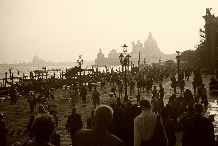 何処へ? 想いを胸に行き交う人々。黄昏のベニスにて